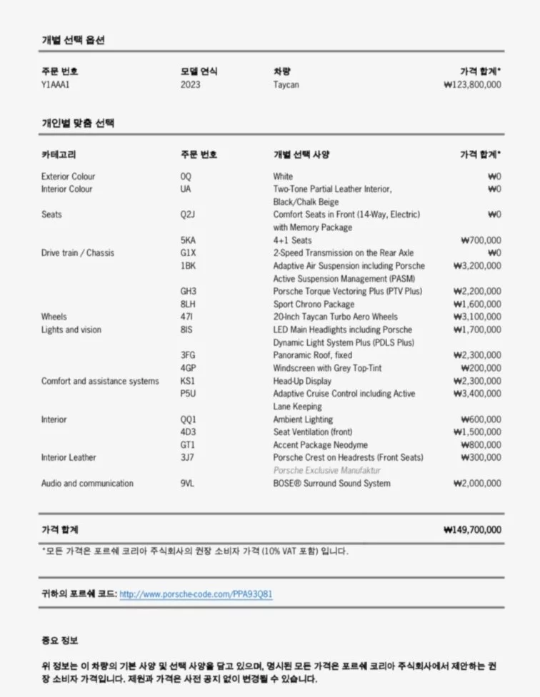 PORSCHE TAYCAN Белый 126 см3 2023 год