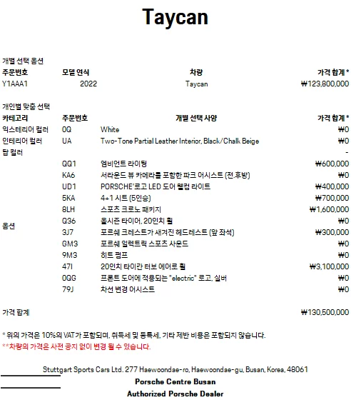 PORSCHE TAYCAN Год: 2022 Объём: 129 сс Пробег: 43 988 км Год: 2022 Объём: 129 сс Пробег: 43 988 км 6 128 905 ₽ Цена под Ключ Составляющие цены
