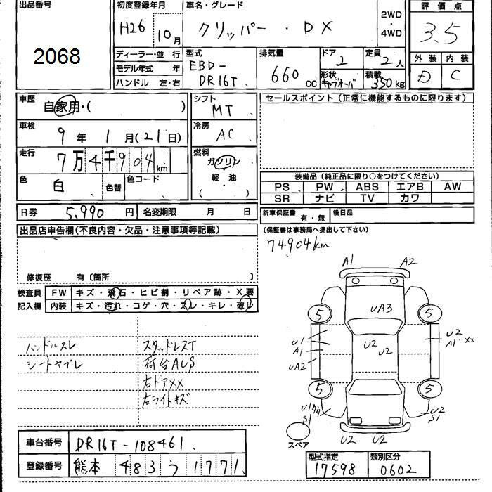 Еще фото Написать в Whatsapp Online Написать в Telegram Мы открыты Позвонить Мы открыты LUM Kobe Nyusatsu Аукцион 9765 Лот В корзину NISSAN CLIPPER TRUCK DR16T Год: 2015 Объём: 660 сс КПП: AT Пробег: 43 000 км Привод: FR,PARTTIME4WD Комплект.: AC Мощность: 50 л.с. Цвет: other Год: 2015 Объём: 660 сс КПП: AT Пробег: 43 000 км 0 ¥ Стартовая цена 537 000 ¥ Средняя цена