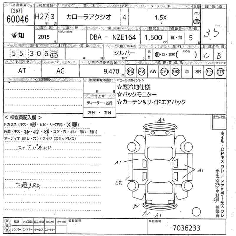TOYOTA COROLLA AXIO NZE164 NZE164 | 2015 год