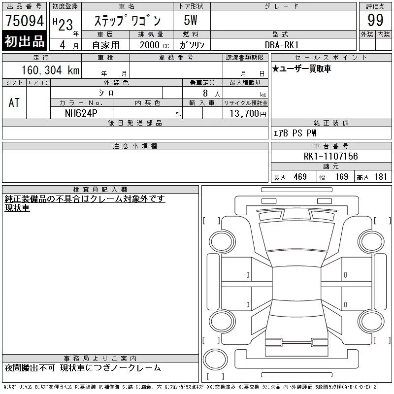 HONDA STEP WAGON Белый 2000 см3 2011 год