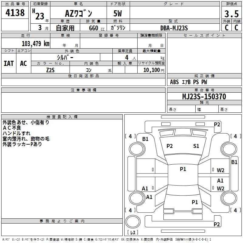 MAZDA AZ WAGON MJ23S MJ23S | 2011 год