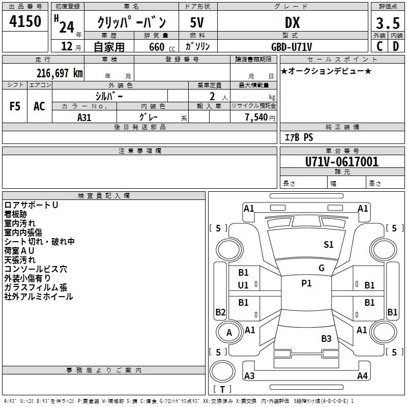 Еще фото Написать в Whatsapp Online Написать в Telegram Мы открыты Позвонить Мы открыты NAA Nagoya Аукцион 4551 Лот Sold Статус В корзину NISSAN CLIPPER VAN U71V Год: 2010 Объём: 660 сс КПП: AT Пробег: 230 000 км Привод: FR Комплект.: AC Мощность: 48 л.с. Цвет: silver Год: 2010 Объём: 660 сс КПП: AT Пробег: 230 000 км 454 243 ₽ Цена под Ключ Составляющие цены