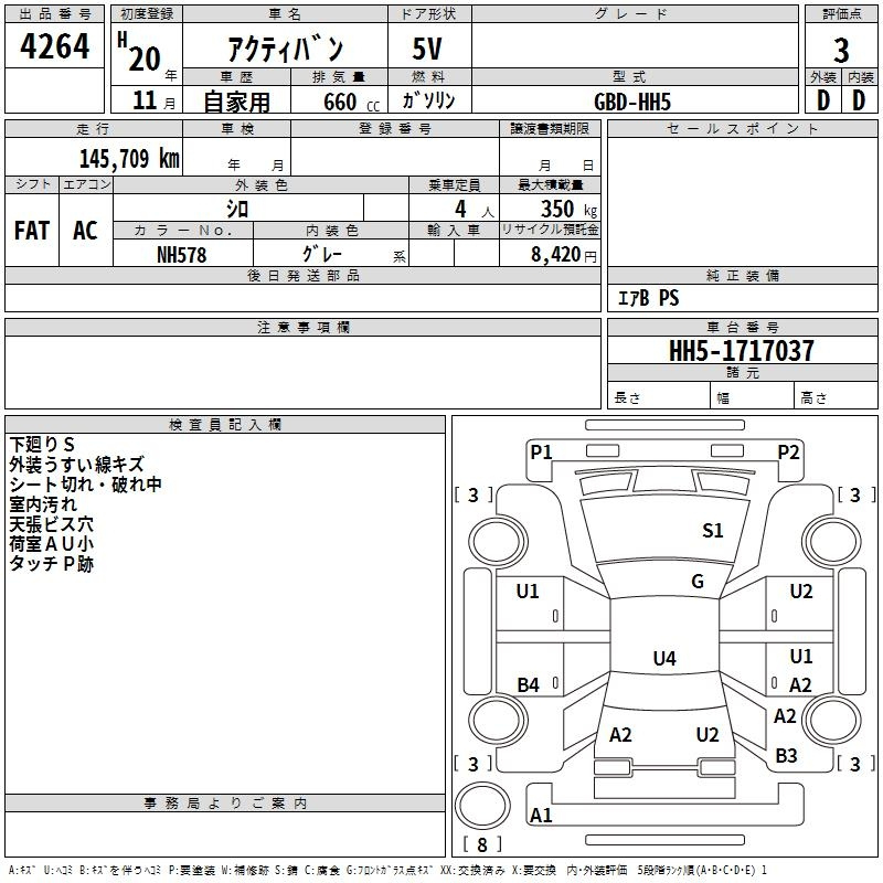 HONDA Акти Вэн HH5 HH5 | 2008 год