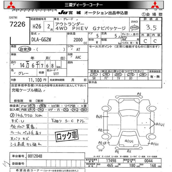 MITSUBISHI OUTLANDER PHEV GG2W GG2W | 2014 год