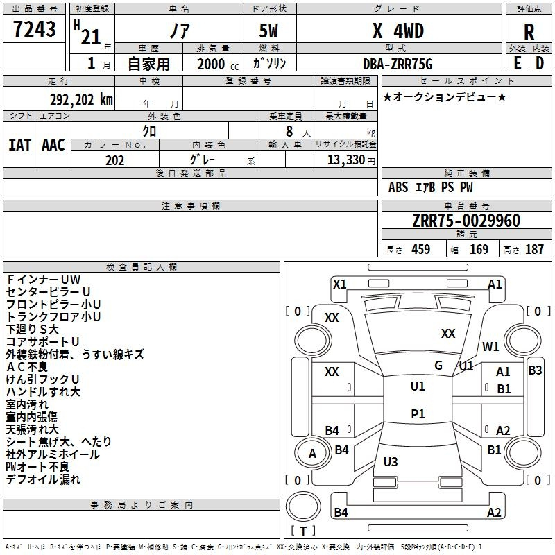 TOYOTA NOAH ZRR75G ZRR75G | 2009 год