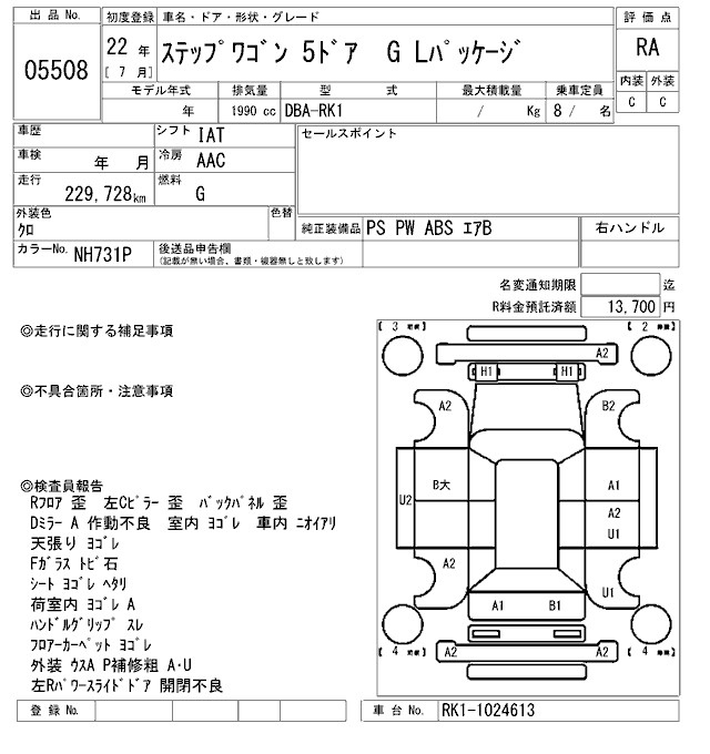 HONDA STEP WAGON RK1 RK1 | 2010 год