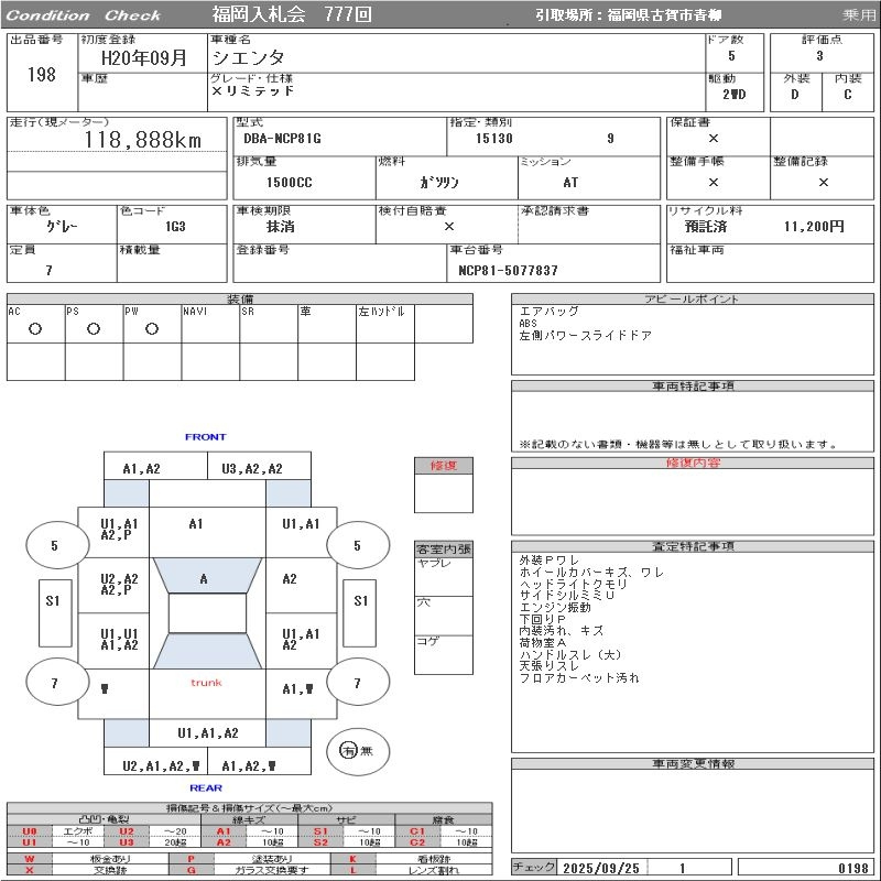 TOYOTA SIENTA NCP81G NCP81G | 2008 год