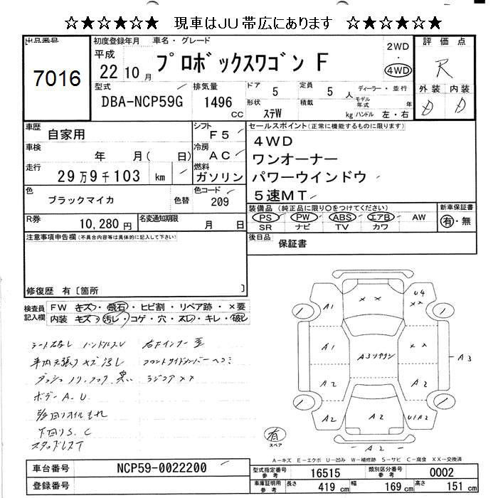 TOYOTA PROBOX NCP59G NCP59G | 2010 год