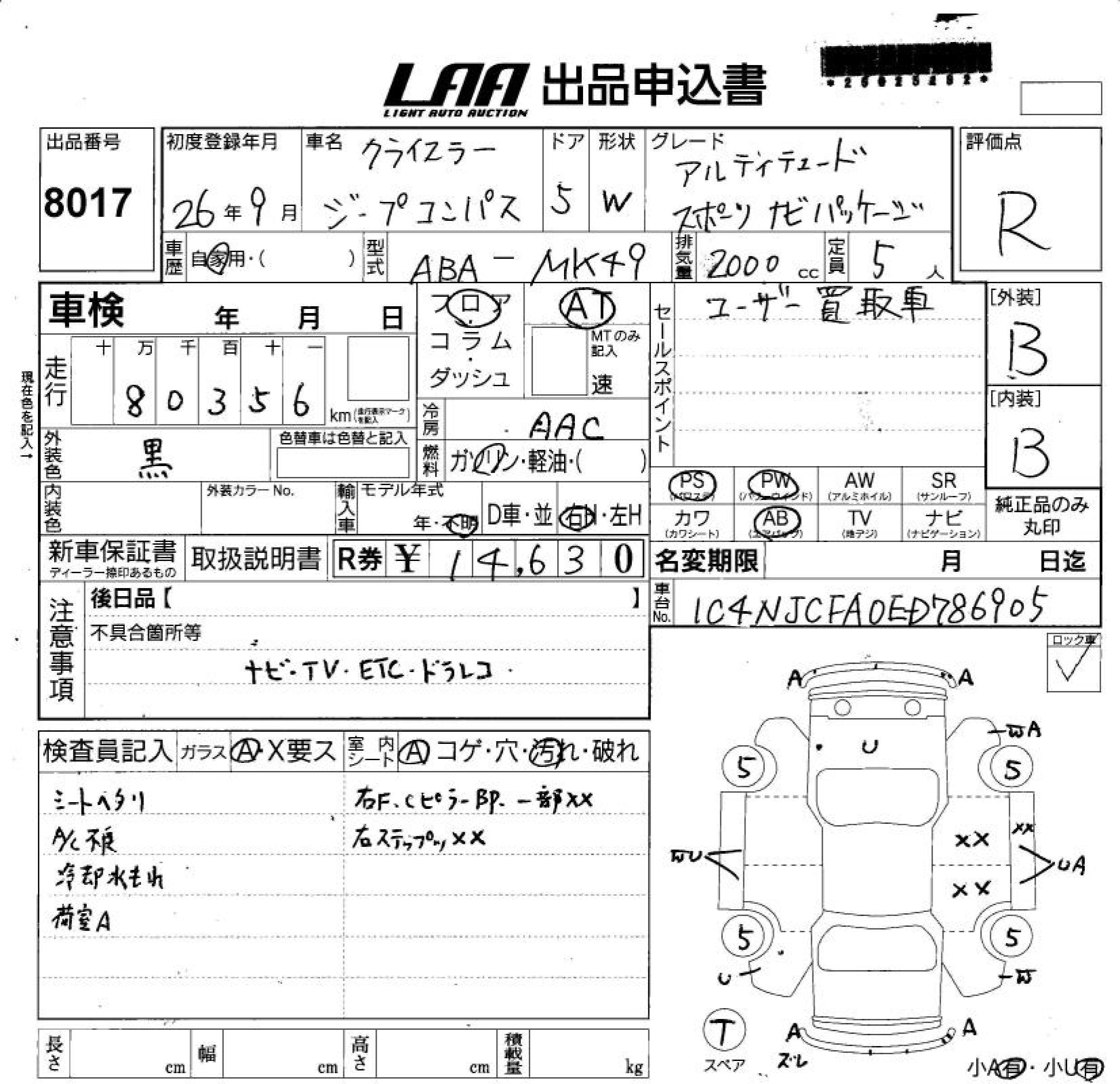 CHRYSLER JEEP COMPASS MK49 MK49 | 2014 год