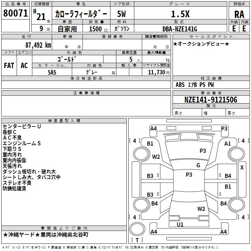 Еще фото Написать в Whatsapp Online Написать в Telegram Мы открыты Позвонить Мы открыты TAA Hokkaido Аукцион 6056 Лот Sold Статус В корзину TOYOTA COROLLA FIELDER NZE141G Год: 2008 Объём: 1500 сс КПП: FAT Пробег: 212 000 км Привод: FF Комплект.: AAC Мощность: 110 л.с. Цвет: white Год: 2008 Объём: 1500 сс КПП: FAT Пробег: 212 000 км 805 301 ₽ Цена под Ключ Составляющие цены