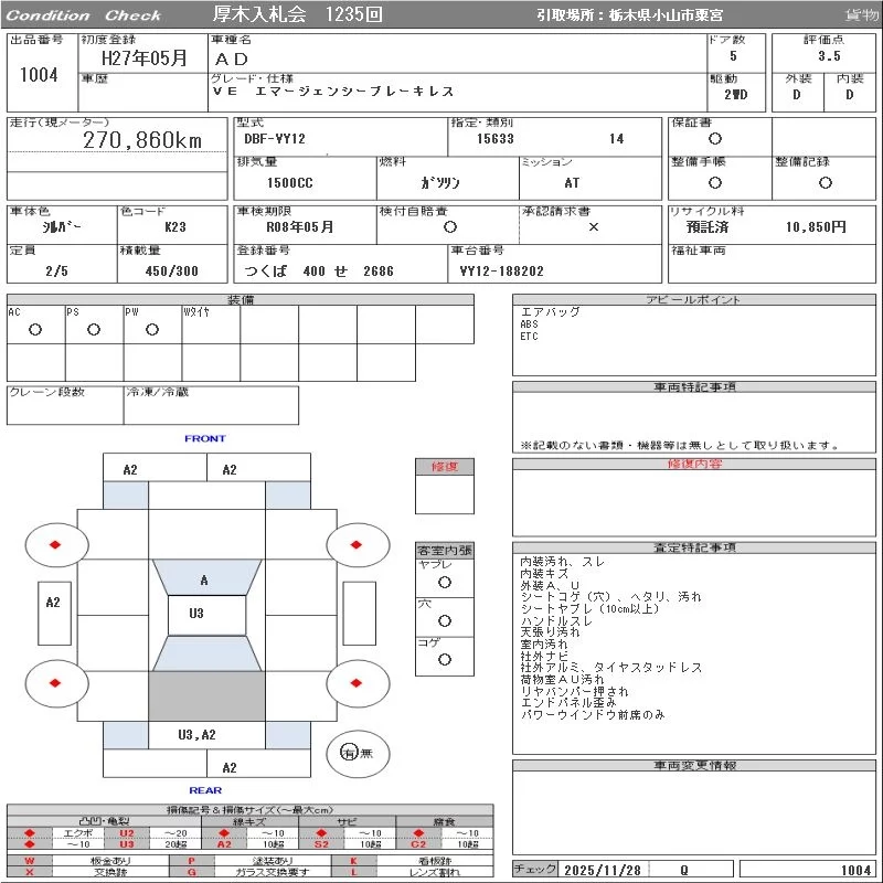 NISSAN AD Серый 1500 см3 2015 год