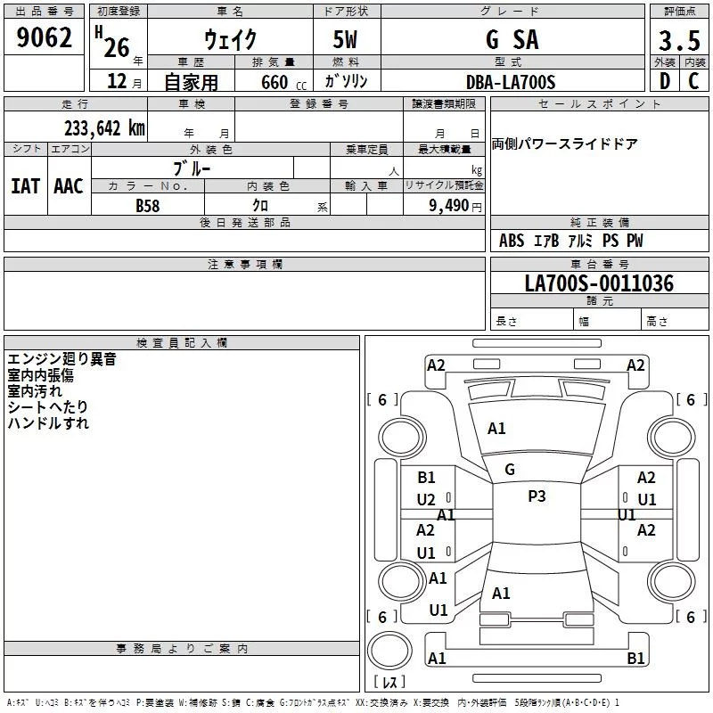 DAIHATSU WAKE Синий 660 см3 2014 год