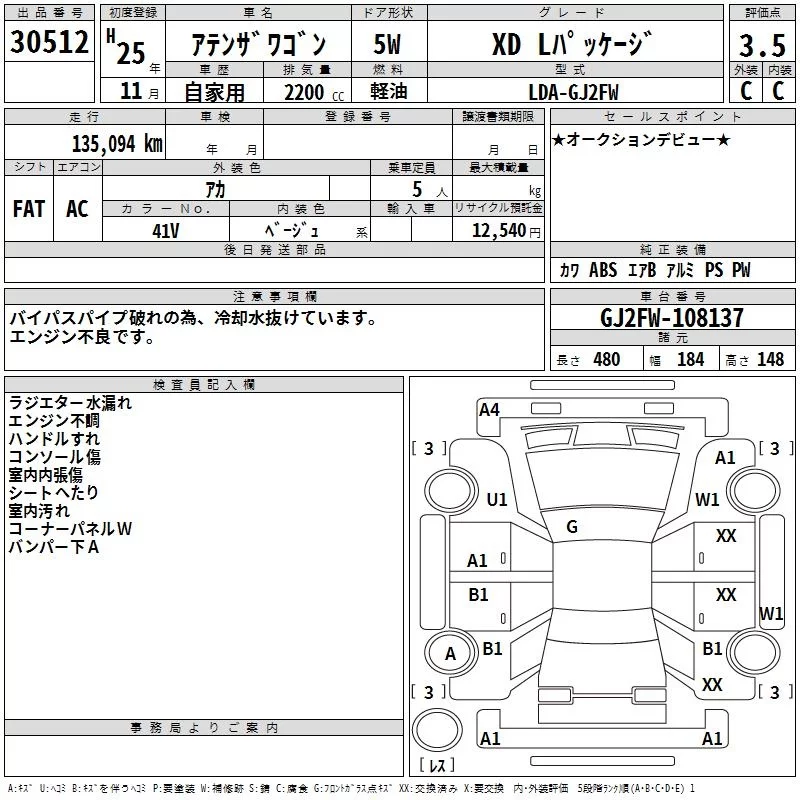 MAZDA ATENZA WAGON Красный 2200 см3 2013 год