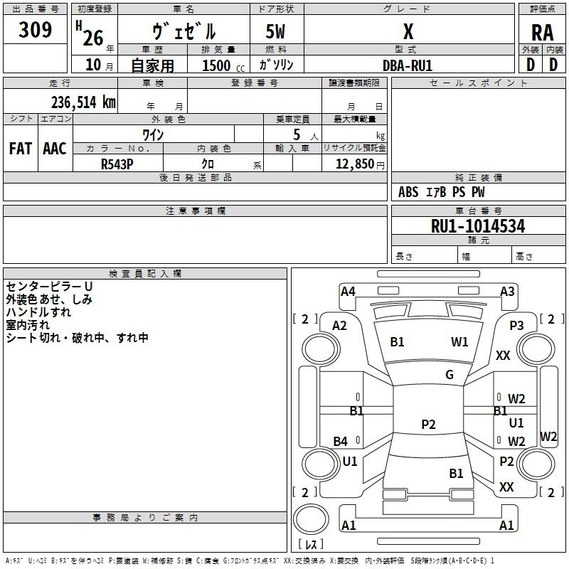 HONDA VEZEL RU1 RU1 | 2014 год
