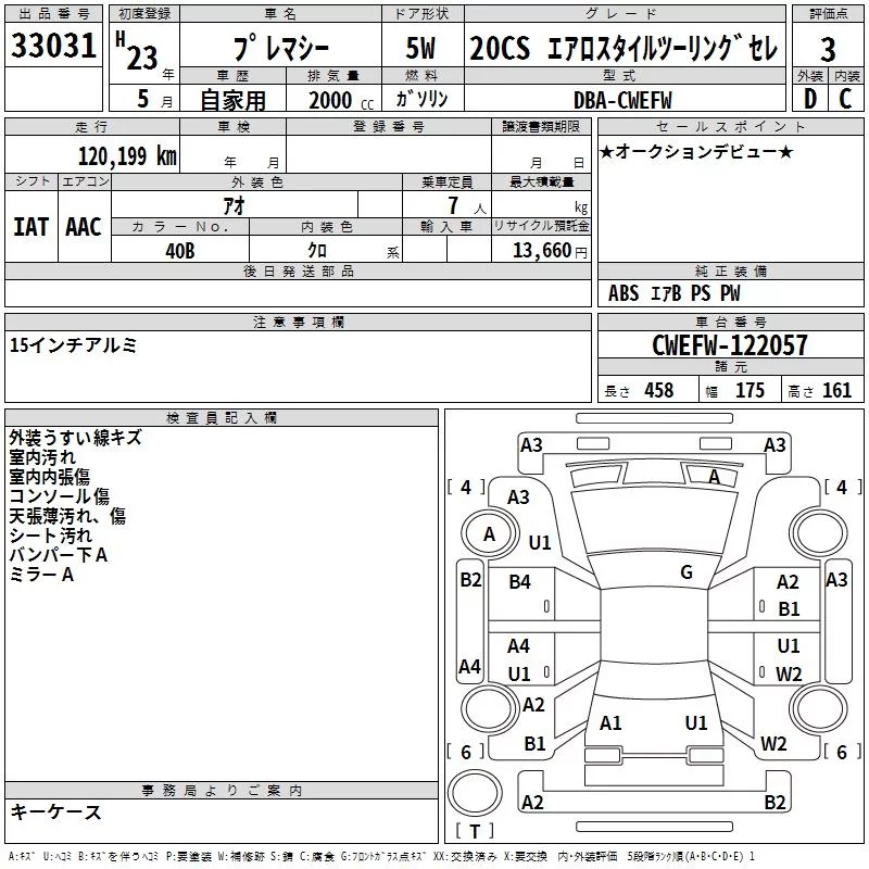 MAZDA PREMACY Синий 2000 см3 2011 год