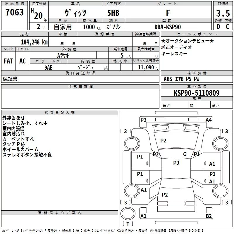 TOYOTA VITZ Фиолетовый 1000 см3 2008 год
