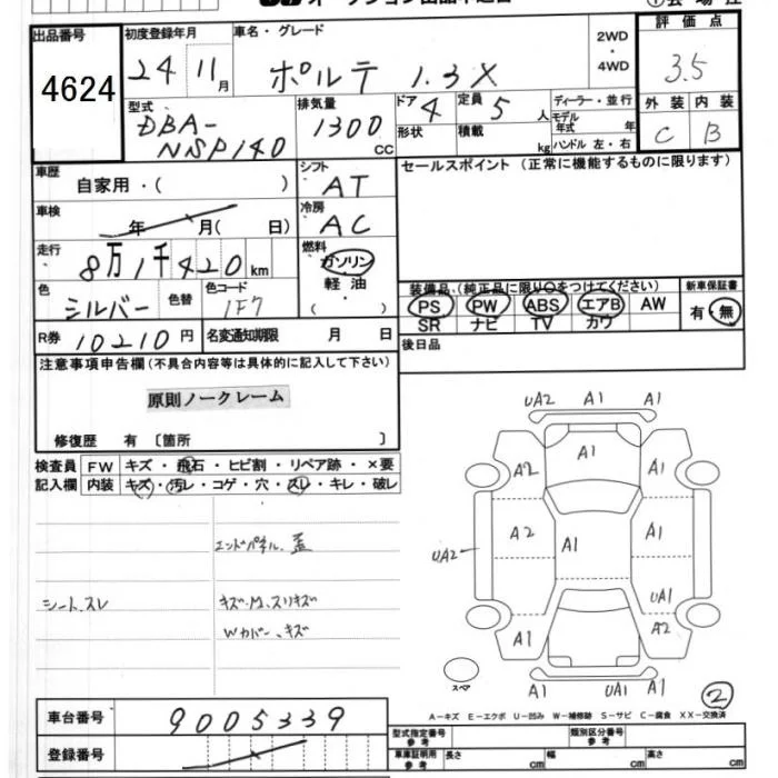 TOYOTA PORTE Серый 1300 см3 2012 год