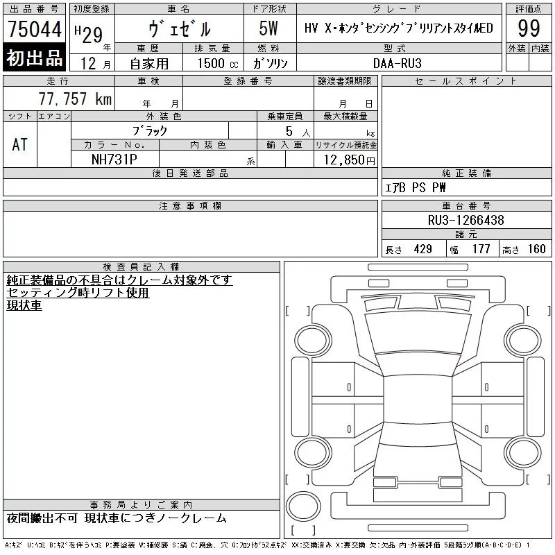 HONDA VEZEL Черный 1500 см3 2017 год