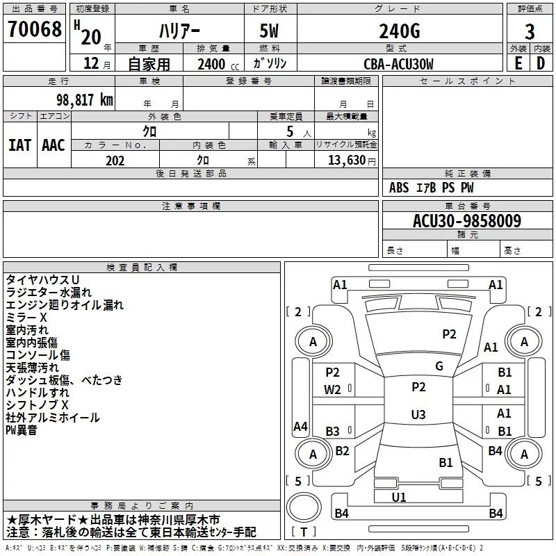 TOYOTA HARRIER Черный 2400 см3 2008 год