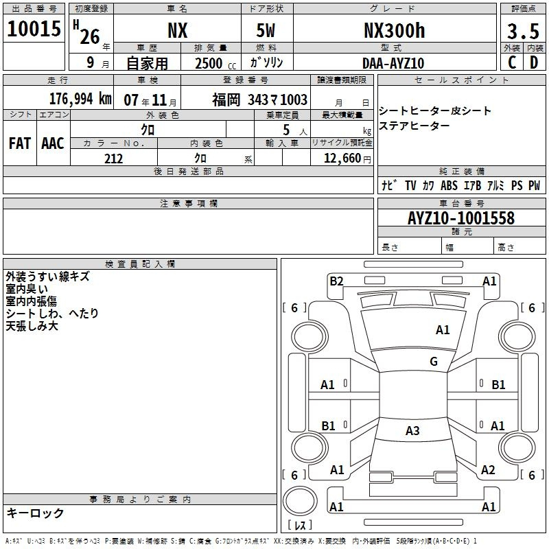 LEXUS NX AYZ10 AYZ10 | 2014 год