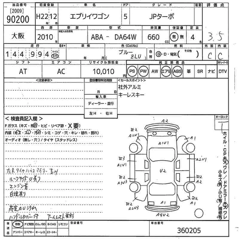 SUZUKI EVERY WAGON Синий 660 см3 2010 год