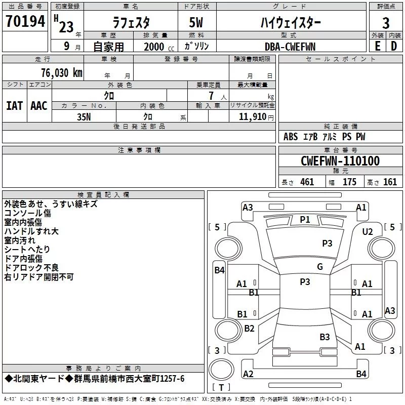 NISSAN LAFESTA Черный 2000 см3 2011 год