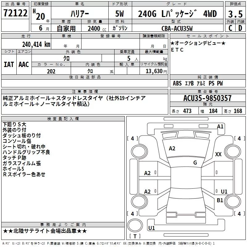 TOYOTA HARRIER Черный 2400 см3 2008 год