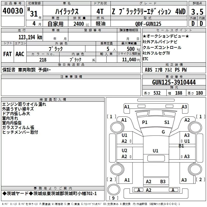 TOYOTA HILUX Черный 2400 см3 2019 год