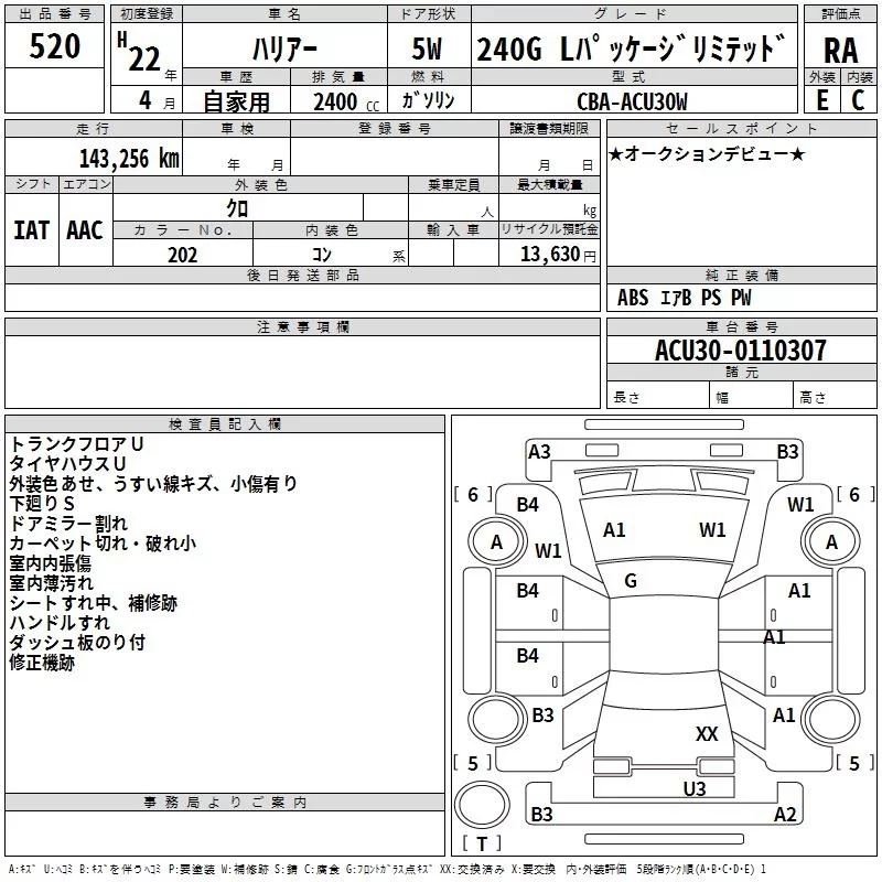 TOYOTA HARRIER Черный 2400 см3 2010 год