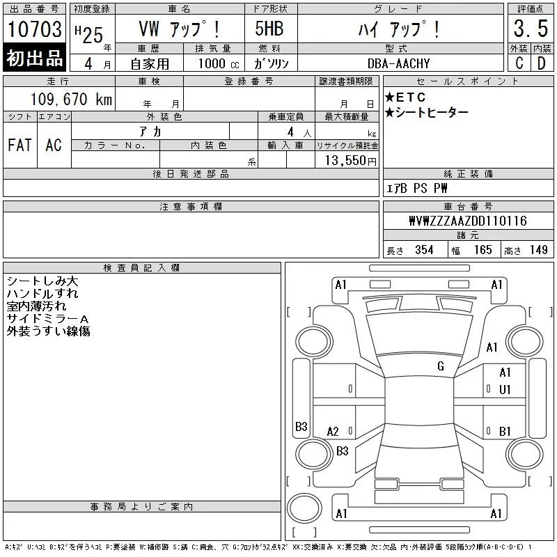 VOLKSWAGEN UP Красный 1000 см3 2013 год