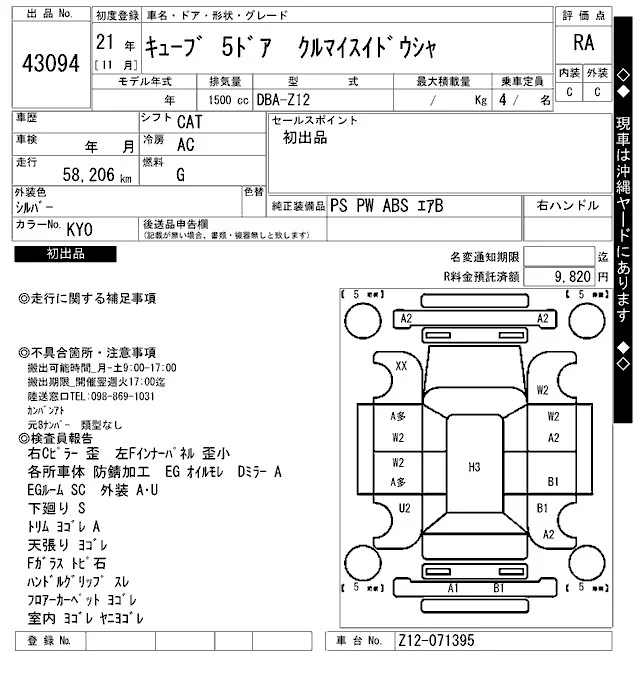 NISSAN CUBE Серый 1500 см3 2009 год