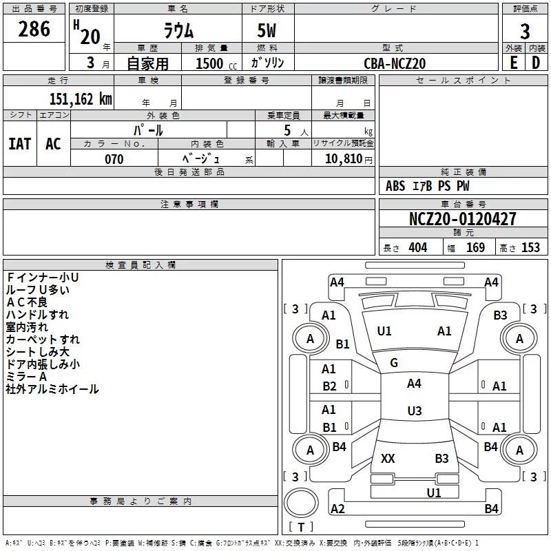 TOYOTA RAUM Белый 1500 см3 2008 год