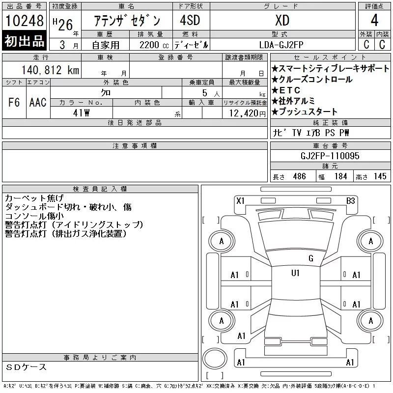 MAZDA ATENZA SEDAN Черный 2200 см3 2014 год