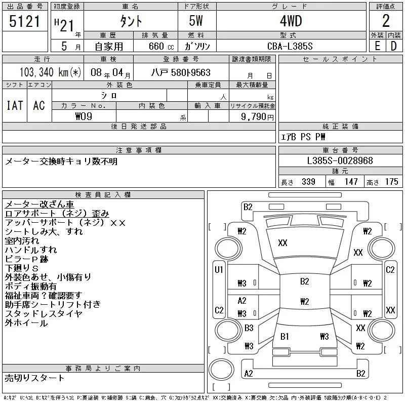 DAIHATSU TANTO Белый 660 см3 2009 год