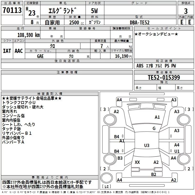 NISSAN ELGRAND Год: 2013 Объём: 2500 сс Пробег: 232 000 км Год: 2013 Объём: 2500 сс Пробег: 232 000 км 5 233 590 ₽ Цена под Ключ Составляющие цены