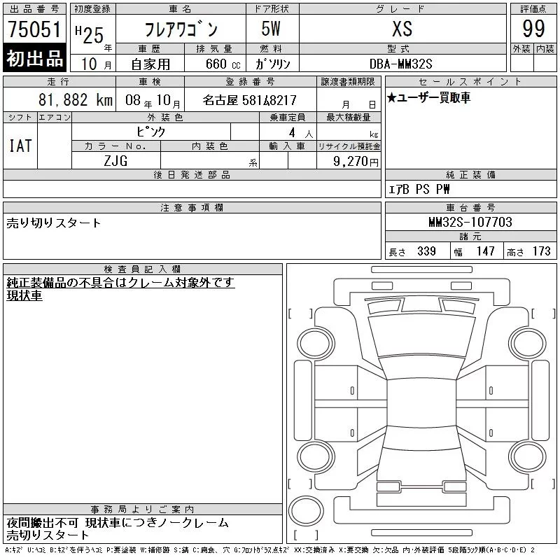 MAZDA FLAIR WAGON Розовый 660 см3 2013 год