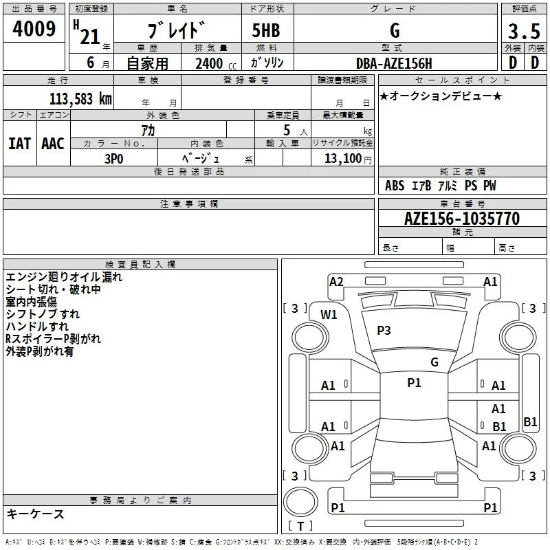 TOYOTA BLADE Красный 2400 см3 2009 год
