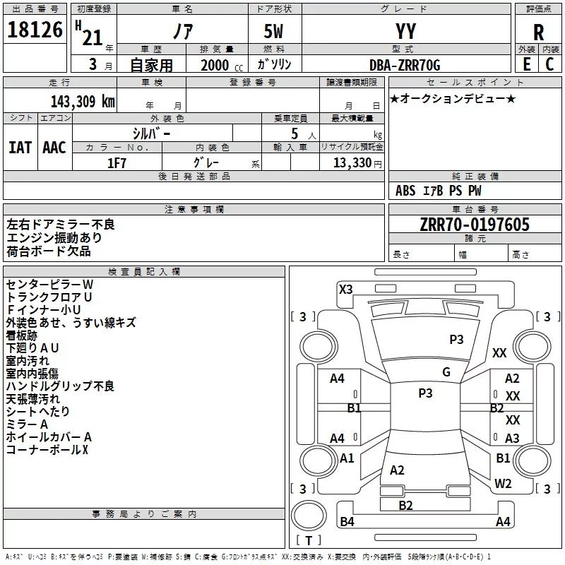 TOYOTA NOAH Серый 2000 см3 2009 год