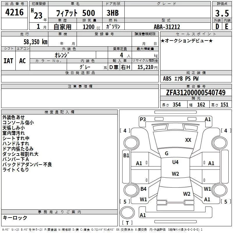 FIAT 500 Оранжевый 1200 см3 2011 год