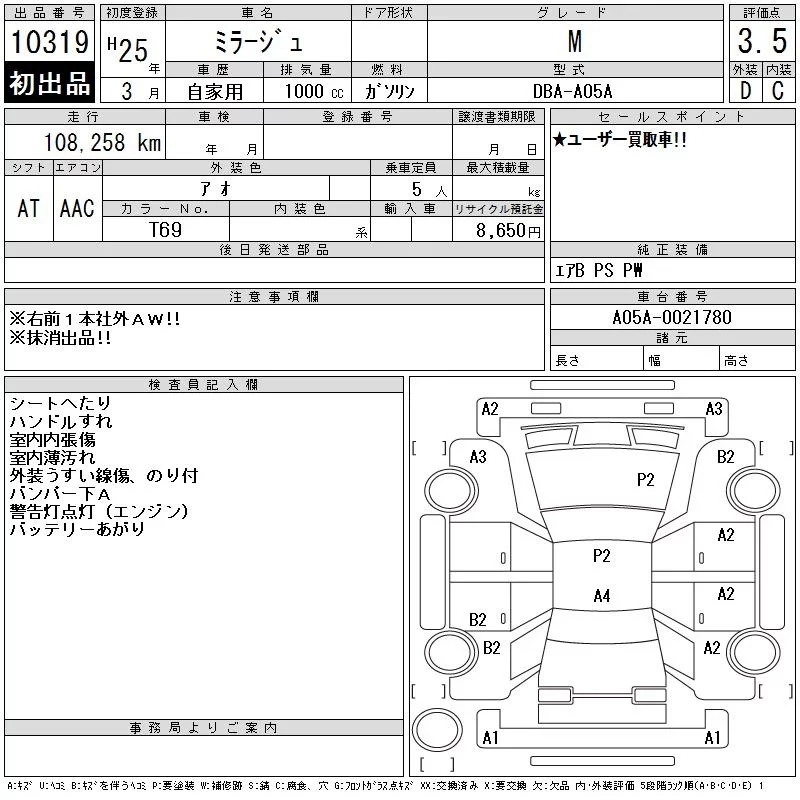 MITSUBISHI MIRAGE Синий 1000 см3 2013 год