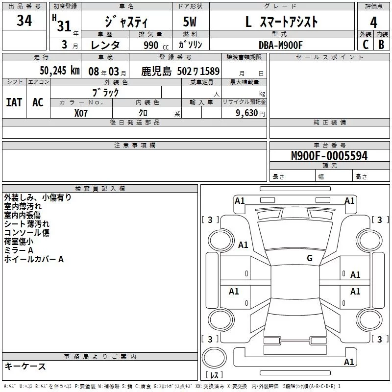 SUBARU JUSTY Черный 990 см3 2019 год