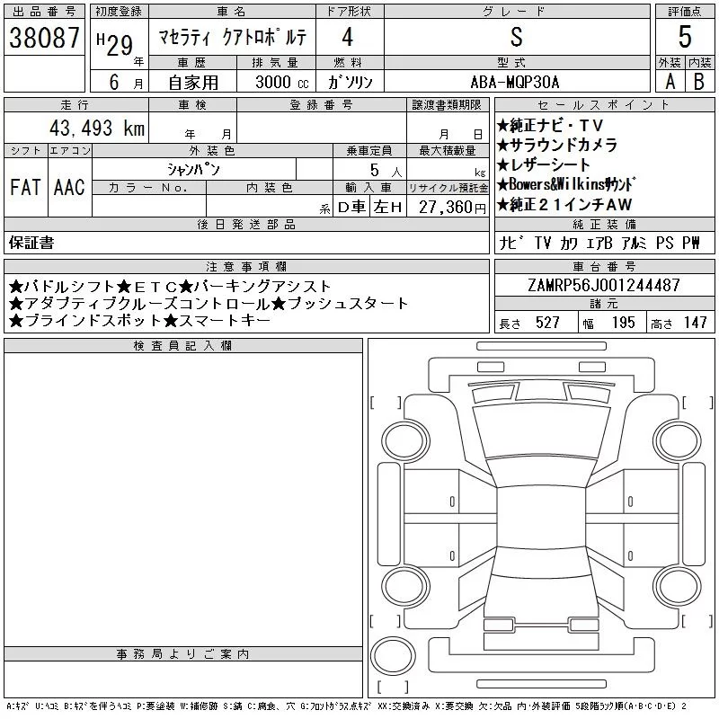 MASERATI QUATTROPORTE Серый 3000 см3 2017 год