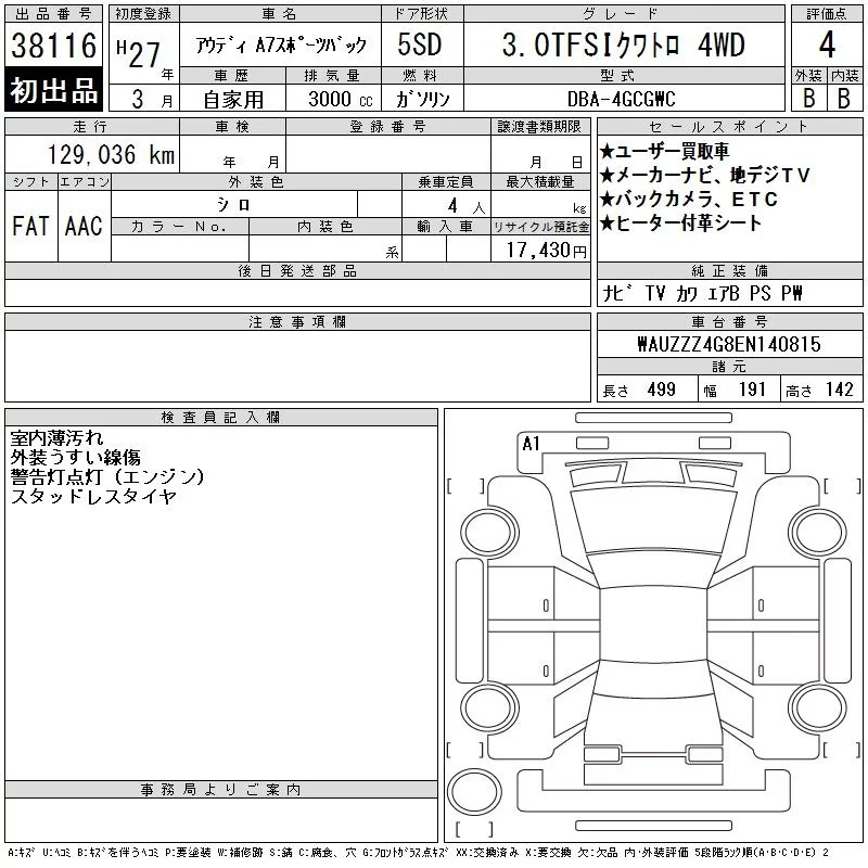 AUDI A7 Белый 3000 см3 2015 год