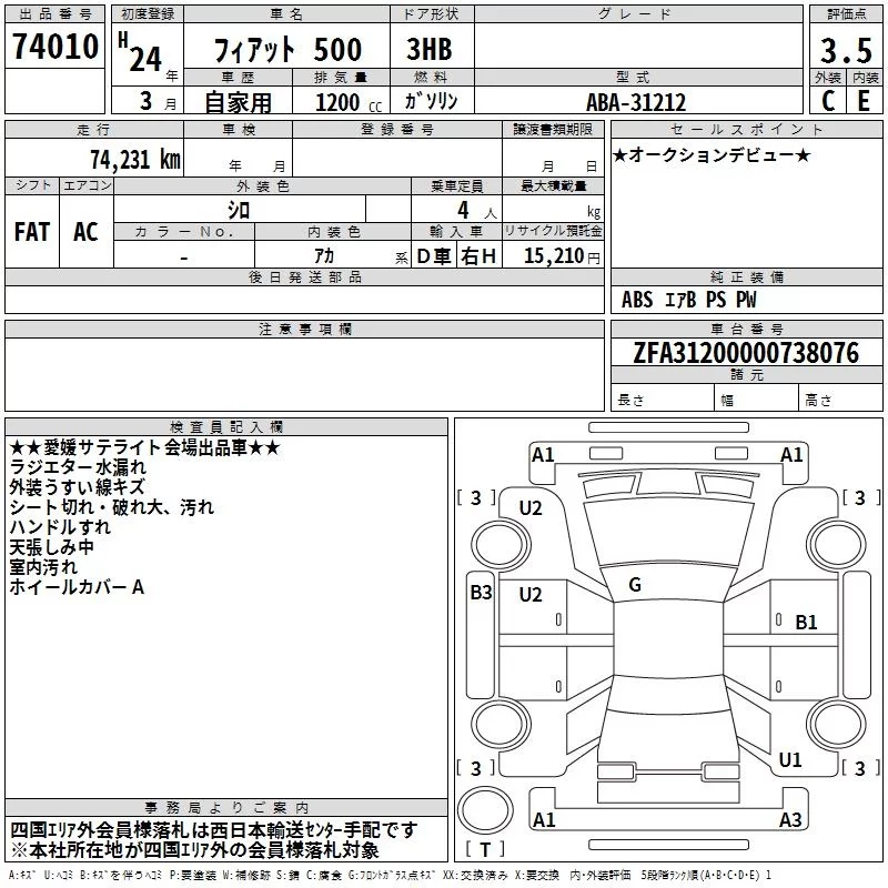 FIAT 500 Белый 1200 см3 2012 год