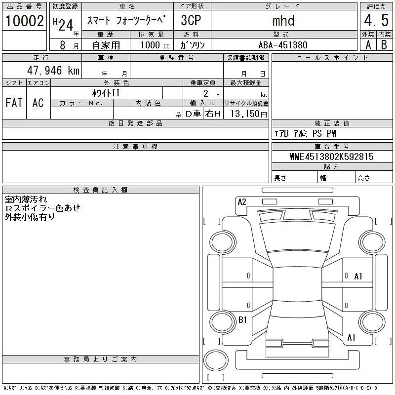 SMART FORTWO 1000 см3 2012 год