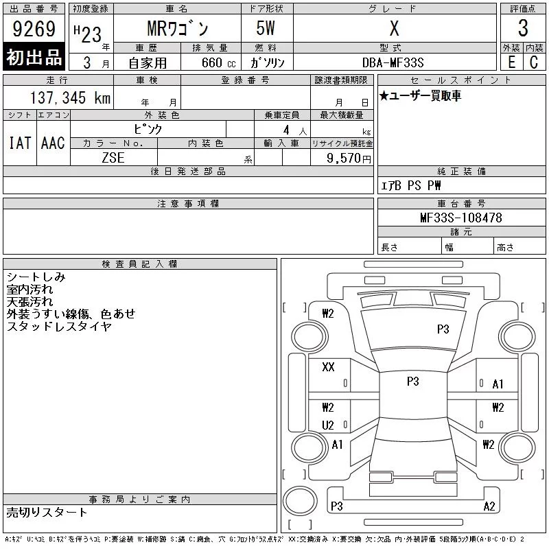 SUZUKI MRWAGON Розовый 660 см3 2011 год