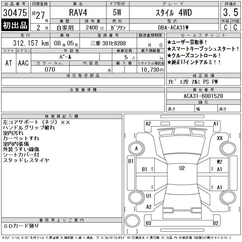 TOYOTA RAV4 Белый 2400 см3 2015 год