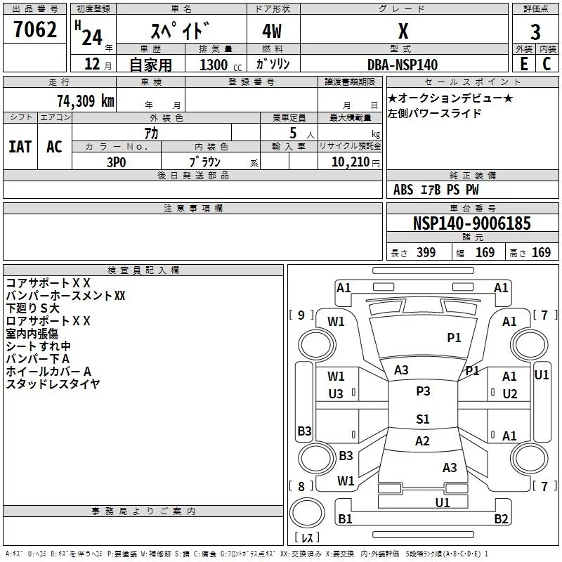 TOYOTA SPADE Красный 1300 см3 2012 год