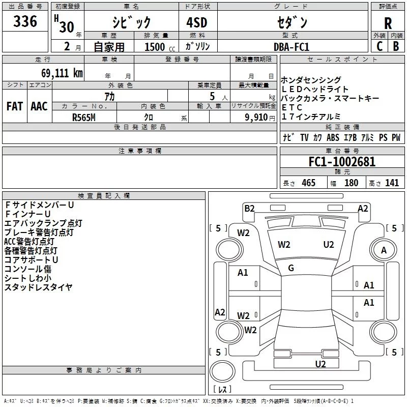 HONDA CIVIC Красный 1500 см3 2018 год